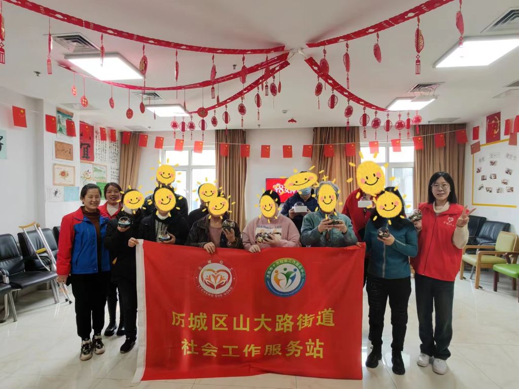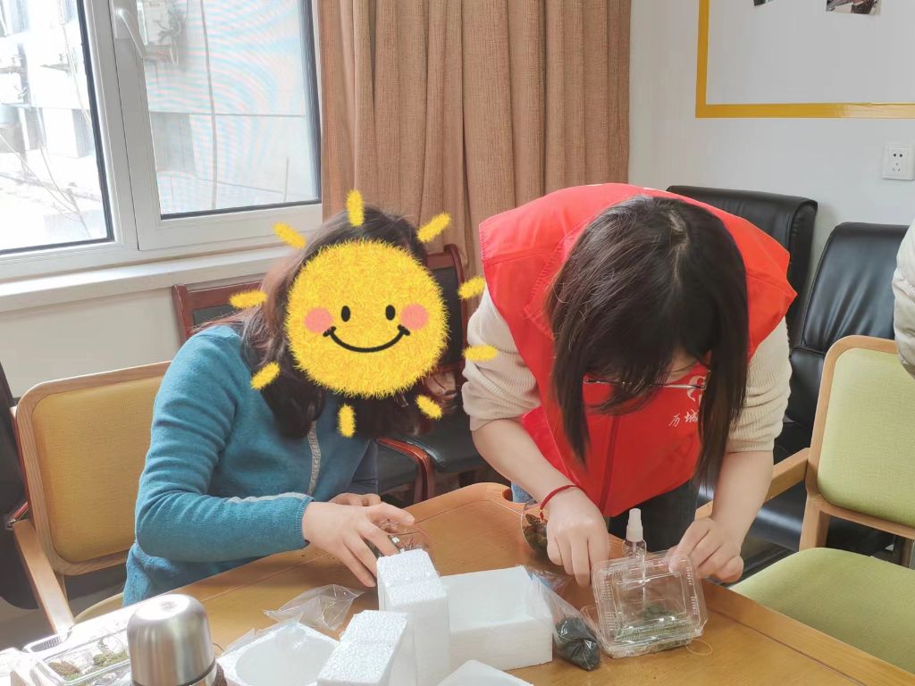 在一片欢声笑语中,一幅幅微缩景观,一个个妙趣横生的小世界,逐渐呈现了出来。方寸之间,尽显浓浓春意;巧手之下,满是勃勃生机。大家看着自己亲自设计的作品,喜笑颜开、爱不释手。活动最后,社工为大家送去了节日祝福,一位奶奶对社工说:“我眼睛看不清,平时不咋参加活动,但这个活动挺好,我能用手摸着满满完成,回家后我就摆到阳台上,谢谢你们哈!”