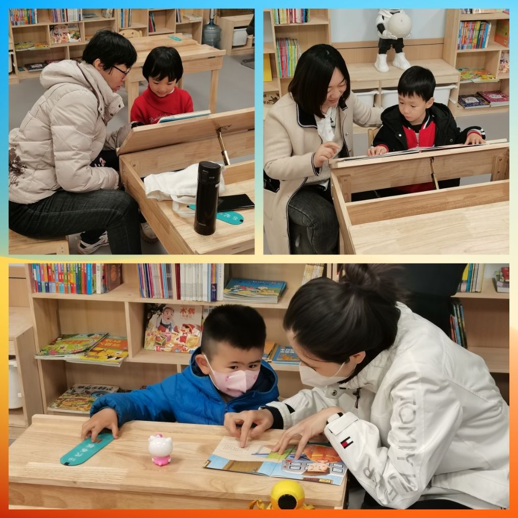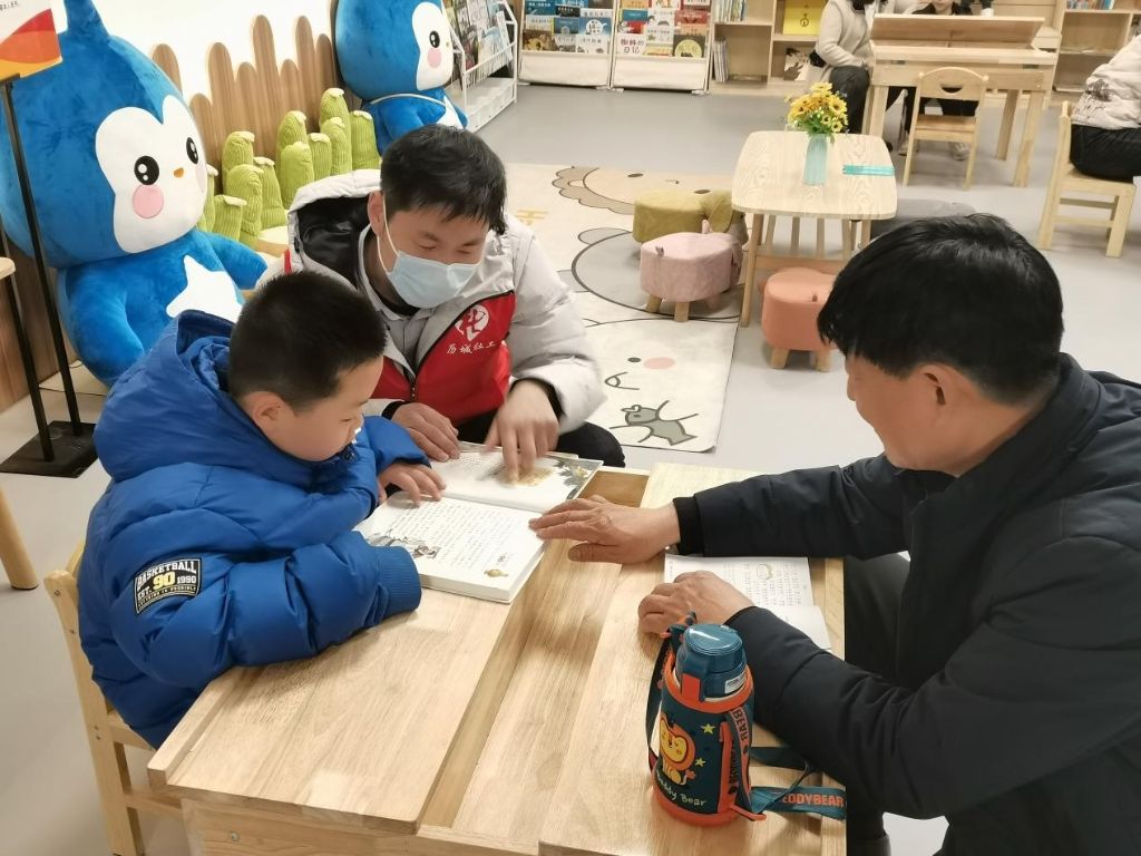 儿童活动室里,小朋友与家长安静地坐在书桌前,一同享受阅读的美好时光。社工与小朋友们亲切交流,用心倾听。并提醒家长,可以通过与孩子交流互动,学习亲子沟通模式、亲子沟通技巧,促进良性的亲子沟通方式的建立。