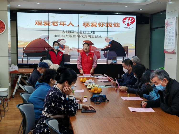 为加强大观园街道社工站开展服务针对性,倾听辖区老年人群体的心声,提供更为贴心的养老服务,2023年12月6日,大观园街道社工站在睦和苑社区开展“观爱老年人,观爱你我他”为老服务项目服务需求茶话会。