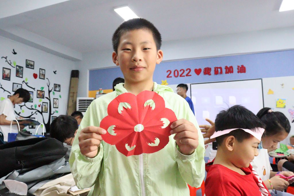 随后,志愿者们又开展了“诗歌猜节气”、“表情包猜成语”、“毛笔字签名”、“剪纸”等沉浸式活动,孩子们在“表情包猜成语”的环节当中积极表现,踊跃发言;在“毛笔字签名”环节当中,孩子们对志愿者姐姐的书法赞不绝口;在“剪纸”的环节当中,孩子们大胆想象,用心裁剪,创造出一幅又一幅美丽的手工作品。