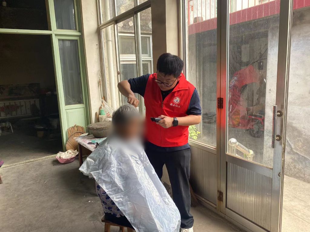 社工每到一位儿童家中,仔细查看孩子们的生活环境,与儿童监护人进行深度沟通,了解孩子们的学习情况、生活情况,并嘱咐监护人要用心照顾儿童的日常生活,关心他们的身心发展,确保孩子们在安全的环境下健康成长。他们是孩子的寄托和依靠,社工鼓励孩子监护人在照顾好孩子的同时注意自己的身体健康,若有困难及时向村干部、社会工作者反应。在探访过程中,社工用“1+1惠彩服务包”工具为年龄较大的监护人测量血糖、血压、理发等,依据检测结果为其提出健康建议。最后,社工根据孩子的不同情况为每位孩子制定成长档案,为后期跟进服务提供依据。