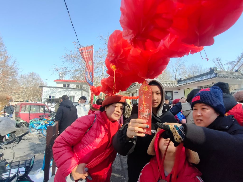 最后一站设在五龙潭公园西门,火红的灯笼高高挂起,形成了一道独特的风景线。节目表演的同时猜谜现场也人影攒动,有的在独自揣摩、有的集体讨论、有的电话求援,大家沉浸在解谜探索中,脸上洋溢着兴奋和期待。