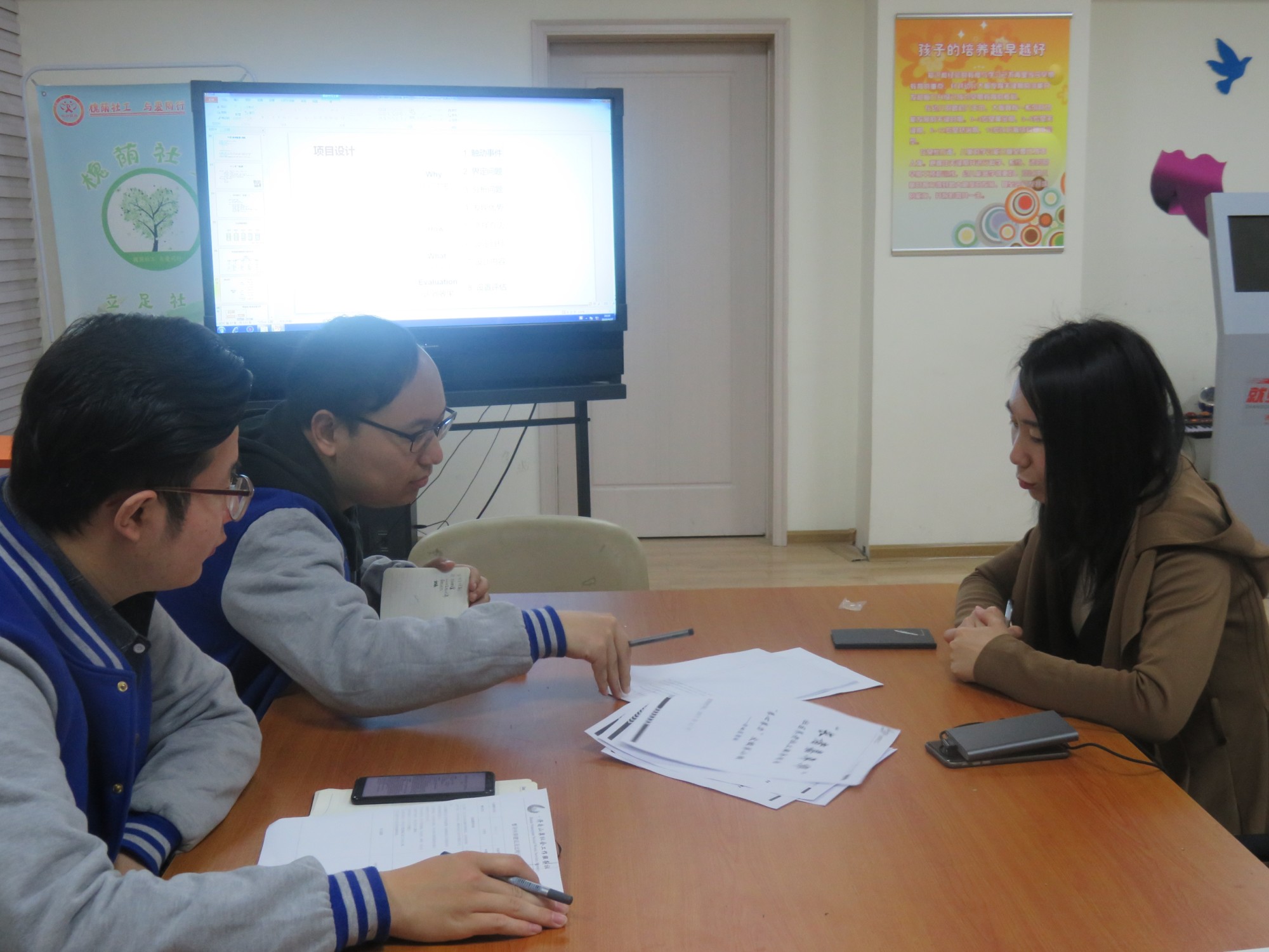 2019年4月27日,槐荫社工心引力项目组邀请枣庄学院李梦伟老师莅临项目组进行督导并指导项目的运作和发展。李老师针对新项目周期各项服务的开展进行规划和建议,对撰写的项目服务任务书提供修改建议。