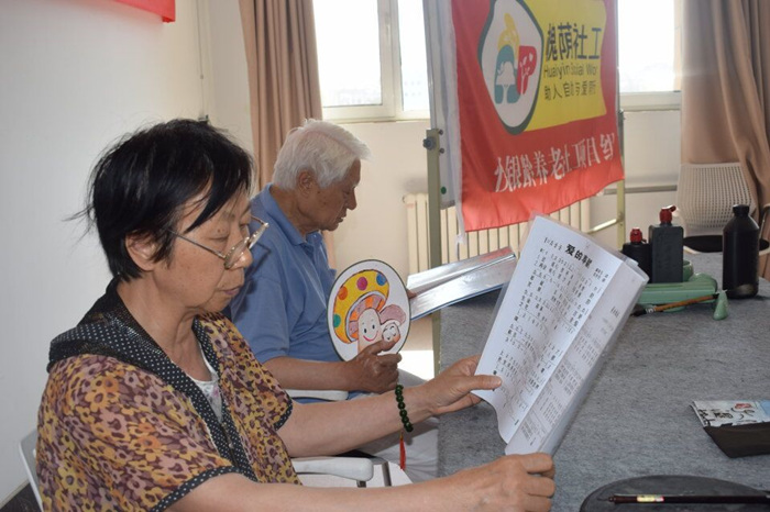 上午九时活动正式开始,首先小组成员在贾奶奶的带领下学习了《爱的奉献》,这首歌较为经典,耳熟能详,所以老人们学起来比较容易,很快就跟随钢琴伴奏合唱起来了。完成新歌曲的学习之后,小组又复习了以前学习的两首歌《小草》和《十五的月亮》。由于小组已开展多次,组员之间比较熟悉,合唱小组形成了以活动领袖为主,社工为辅的小组活动模式。