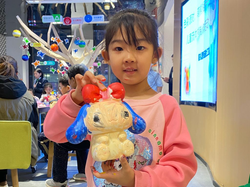 孩子们戴上手套,拿起工具,认真地挑选自己喜欢的颜色。在社工们的协助下,孩子们将调配好的颜料涂在石膏娃娃的白胚上,颜料在白胚上融合,形成独一无二的色彩,孩子们自由发挥着自己的想象力,每一只石膏娃娃都承载着他们童真的梦想。