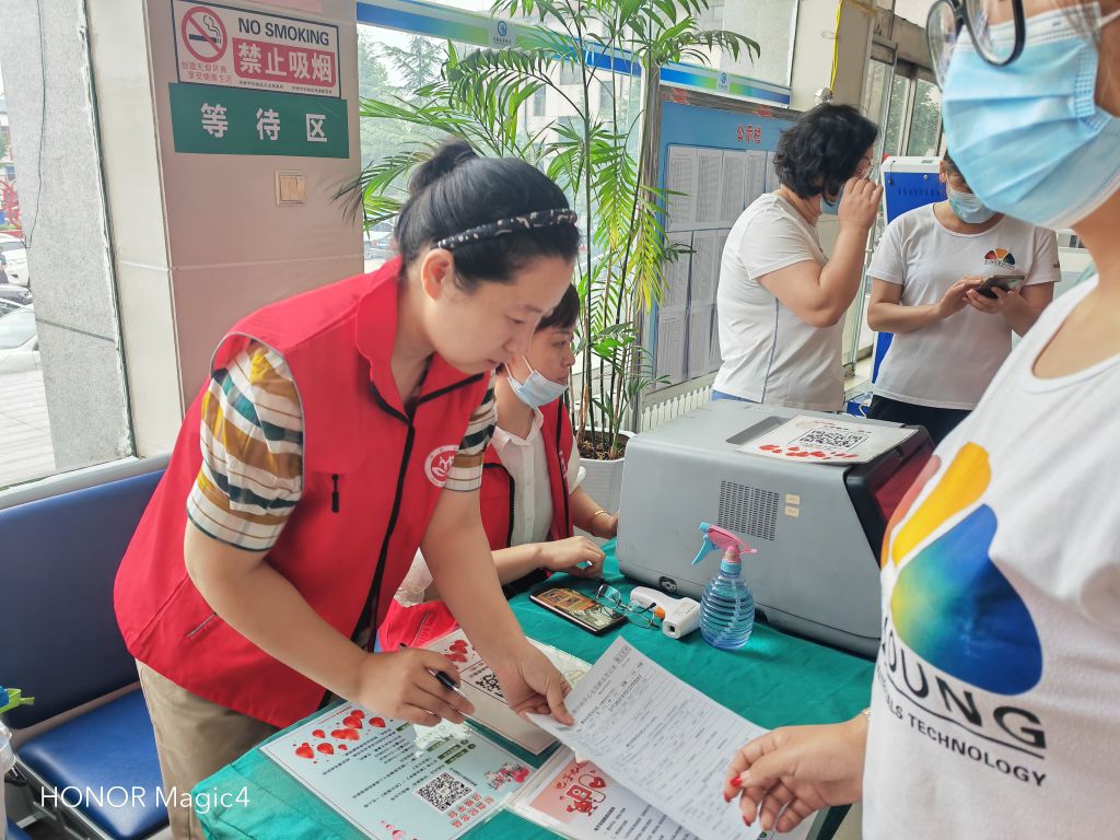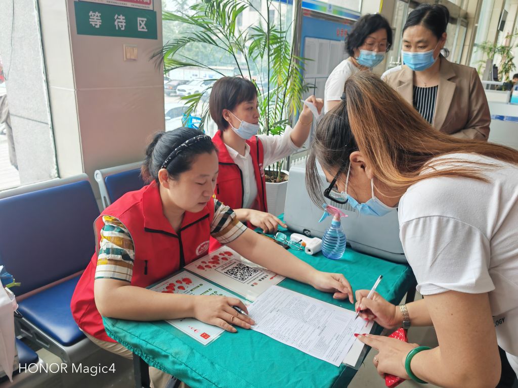 活动现场,社工向群众发放宣传手册,讲解血液的组成、献血注意事项、献血会不会传染病等相关知识,现场气氛十分热烈。献血准备环节,社工和医务人员紧密配合,组织献血群众有序排队,逐项完成信息表格填写、体温检测、血压测量、血型检测等工作,在血液检测确定合格后进行无偿献血,整个流程有条不紊。