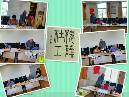 活动伊始,项目社工引导组员就坐,并将提前准备好的墨汁和宣纸摆放在便于组员取用的位置;“我先给咱们社工写几个字”,籍老师率先发言。其他组员纷纷回答:“好,你写的篆体非常漂亮,可以给大家每人写一幅,咱们相互学习一下”。今天活动现场的组员们的交流明显比上一次的小组活动提高了一个深度。通过大家专心致志,用心的书写,不一会儿篆体的“槐荫社工”、自由体的“助人自助,与爱同行”、楷体的“惠风和畅”、“自古书家多长寿,情恰墨趣现笔端”、“法取兰亭存气韵,书随时代见精神”等等一幅幅崭新的书法作品呈现在大家面前。最后由项目组社工展示两名老师特意给项目组书写的作品,组员们相互观摩、学习并交流,活动现场的氛围欢快又温馨。