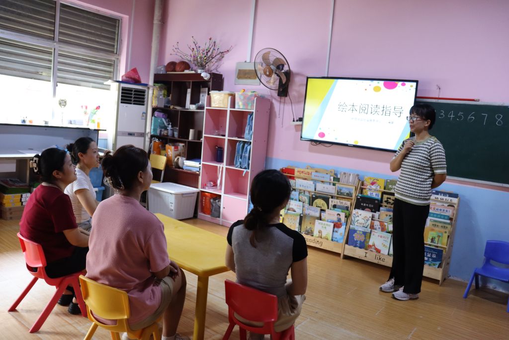 为了让幼儿园的老师们了解绘本并且学会科学的绘本阅读方法,社工对老师们进行了绘本阅读指导,从如何选绘本到如何开展阅读活动,再到阅读对孩子的八大智能影响都进行了详细的讲解。社工还就自己上早教绘本阅读的经验分享给老师,教会大家如何进行阅读延展,强化阅读成效。培训结束后老师们反馈说,这个培训特别有意义,让她们对后期开展阅读活动有了新的思路和灵感,也对开展阅读活动信心十足。