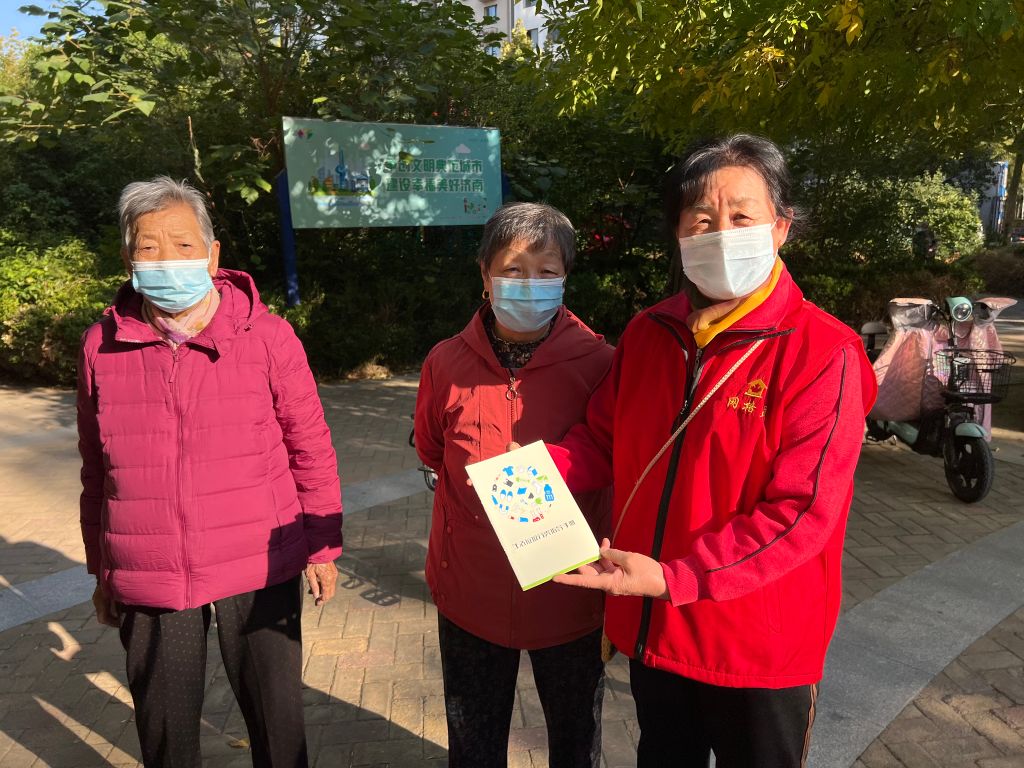 今天恰好赶上全员核酸检测,社工发现辖区内志愿者大部分是退休的叔叔阿姨,他们身穿统一的志愿者红马甲,社工引导者志愿者维持检测秩序的同时可以宣传着环保政策内容:“生活垃圾要分类,干湿垃圾要区别。社区治理来参与,社区环境更好啦”。志愿者们自己编的顺口溜朗朗上口,简单明了的为居民介绍环保政策内容,吸引着大家通过自身一点点改变最终给社区环境带来一个完美的蜕变。