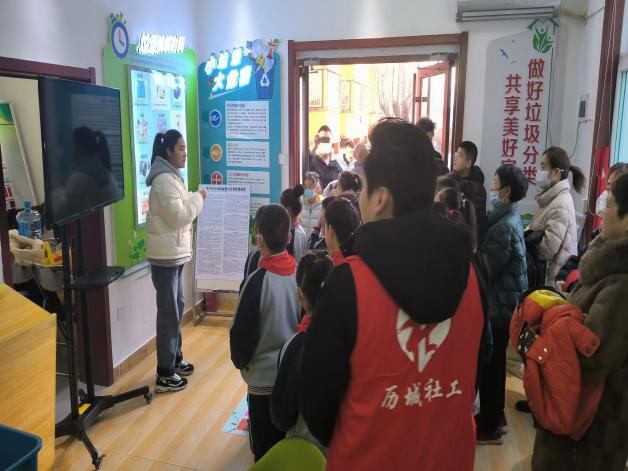 为引导儿童科学、自觉地在生活中进行垃圾分类,逐步形成环保意识,养成珍惜环境、节约资源的习惯,深入了解垃圾分类的意义。郭店街道社工站联络社会资源,联合虞景社区于2月25日下午在郭店小区开展“大手拉小手、共当垃圾分类小卫士”活动。