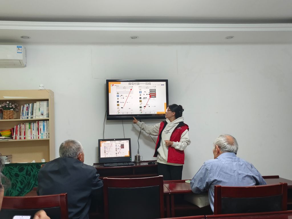 在与小组成员共同回顾上节小组学习内容的同时,引出本节重点“收付款码灵活运用”。社工以“展示+讲解+模拟”的服务模式,为小组成员准备了一场“虚拟超市”,通过社工前期讲解出示付款码的步骤,小组成员纷纷掏出手机,准备实战演练一番。经过一上午的练习,面对社工多种支付方式的挑战,小组成员都可以见招拆招,轻松面对。