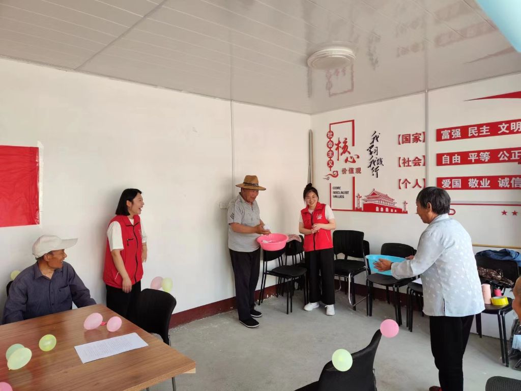 活动当天,参与活动的爷爷奶奶早早地来到现场,社工首先向大家介绍了本次活动的流程,带领爷爷奶奶做拍打操、抛绣球游戏活跃现场气氛。
