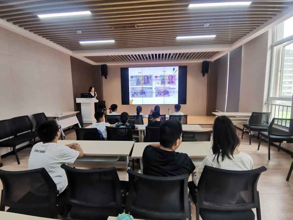 活动开始前由社工开场,向成员们介绍本次活动链接资源方—北京银行,并告知其活动流程。随后由北京银行的工作人员带领成员们进入“金融启蒙小讲堂”。首先工作人员通过PPT的形式,逐步让青少年们了解到货币的起源和演变过程,从最初的实物交换,到后来的金银货币,再到现在的纸币和电子货币。其次,利用图片展示的形式让青少年直观地了解钱币的不同面值,包括人民币的形状、颜色,同时以提问的方式引导成员们观察钱币上图案的特点,并找出钱币上对应的景点及相关花纹。过程中社工时刻关注成员们的行为,不断激发成员们的学习兴趣,并帮助其树立正确的财富观,明确每一分钱都凝聚着辛勤劳动的价值。