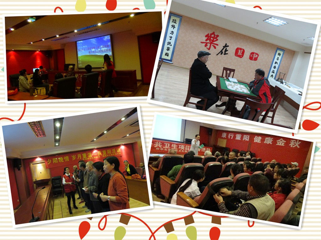 金秋十月,槐荫社工南辛项目组与南辛街道三个社区联合开展系列老年活动,以“康行金秋·健度重阳”—秋季养生讲座为老人健康保驾;以“夕阳晚情,岁月重温”—文娱活动为老人娱乐护航;以“黄金十月 恭祝国庆”—观影系列活动为老人开阔视野,期间结合现有的兴趣班、自助互助小组激发老年人紧跟时代、动感生活的兴趣。