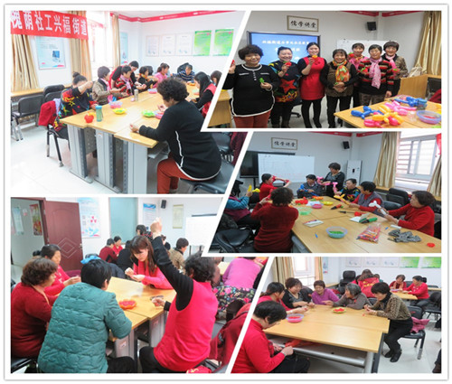 2015年12月21日,“乐融兴福·多彩人生”妇女手工小组首次活动正式开始。为了更好地服务小组成员,让所有人“不掉队”,社工项目组采用“社工+志愿者”的方式开展此次串珠小组。活动分为两个小组同时进行,首先由牵手手工创作坊潘永会老师教授体验课选拔出的16名学员志愿者,再由项目组社工和学员志愿者教授另一组小组成员。