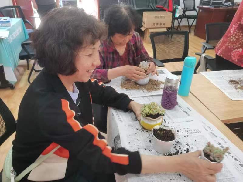 舜耕街道社工站开展“手植绿意 拾趣多肉”母亲节主题活动