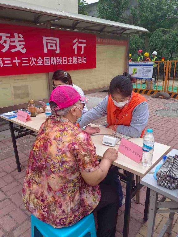 2023年5月21日是第三十三次全国助残日,为进一步弘扬中华民族扶残助残的传统美德,勉励残疾人发扬自尊、自信、自强、自立的精神,营造全社会理解、尊重、关心、帮助残疾人的良好社会氛国,北坦街道社工站联合生产路社区,链接其他资源,在天和新居小区开展了“爱心相伴 助残同行”残疾人义诊活动。