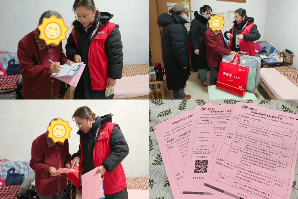 小小的饺子包住了幸福社区生活,沉沉的暖冬礼包陪伴了老人寒冷冬天。营市街街道社工站社工带着槐荫妇联“巾帼情怀”提供的暖冬礼包,穿梭在社区的大街小巷里,将温暖送到困难老人的手上。社工在聊天中,了解他们的生活情况和身体状况,收集他们的需求及问题,给予精神上的慰藉和鼓励。最后,社工为困境群体送上《营市街街道社工站服务三清单》,为其宣传了社会救助政策和相关法律法规,通过服务清单从身边事上送去关怀与帮助。