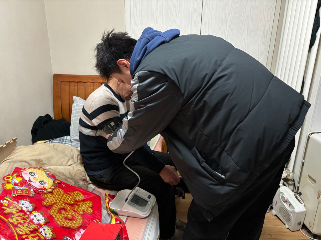 此次走访慰问,同时设置了入户体检环节。济南应急救援学会的工作人员对残疾居民进行了血压、血糖检测,并根据体检情况,有针对性地开展健康指导,详细解答居民提出的问题和困惑,以提高残疾人群体及家属对自身健康的重视程度,帮助树立健康生活理念。