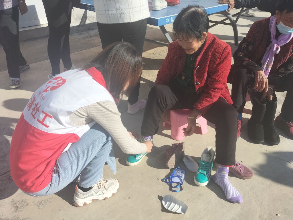 一双双崭新的棉鞋让老人从脚底暖到了心里。老人们说:“我们真是好福气,跟我们非亲非故,却一直挂念我们,我们的脚上和心里都是暖乎乎的!”看着领到的新棉鞋,老人们激动不已,社工和志愿者们亲切的与老人们交谈,详细询问他们近期身体状况和日常生活情况,关心他们的防寒保暖情况,叮嘱他们要添衣保暖,做好防寒措施,保重好身体。老人们感受到了社工站的关心关爱,拉进了社工与群众之间的关系。