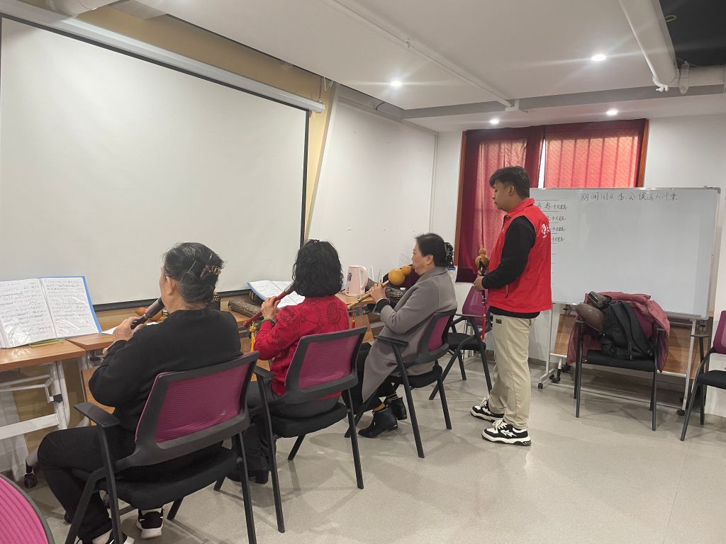 社区葫芦丝爱好者欢聚一堂,共同探讨葫芦丝演奏技巧和练习操作。主要从葫芦丝的构造,掌握葫芦丝的基础乐理知识、演奏葫芦丝的站姿、坐姿,以及葫芦丝的保养方法等方面进行交流。大家你一首我一曲,以乐会友,不亦乐乎。悠扬的音乐此起彼伏,仿佛每一个音符都在跳动着春天的活力。在活动中,大家还坐在一起共同吹奏了经典乐曲《映山红》,丝竹悠扬的声音萦绕于活动中心,让人忍不住驻足聆听。“非常感谢给我们葫芦丝爱好者这个交流学习平台,让大家聚在一起感受音乐魅力,既可以充实生活,也让我们老有所学,老有所乐。”社区居民王阿姨开心的说。