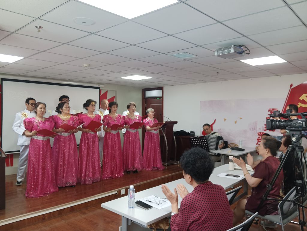 最后,在社工站和社区工作人员的协同配合下,裕北社区居民与老党员合唱《没有共产党就没有新中国》,在敦厚低沉的歌声中,唤起了党员的红色记忆,为党送上生日祝福。
