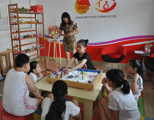 此次沙盘心理游戏,社工专门请的心理专家老师来给孩子们进行指导,孩子们在认真听完心理老师的讲解后,分别拿了自己喜欢的沙具放在沙盘里,然后分别将自己拿的沙具与自己的自身特征相结合给老师和其他伙伴们做了自己独一无二的自我介绍。在老师和孩子们进一步熟悉以后,老师让孩子们进行了6轮的沙具摆放,孩子们按照自己的意愿随意拿取、摆放或挪动沙具。最后老师根据孩子们各自的行为进行了心理的解析和指导,不仅使孩子们自身的身心健康得到发展,还增近了孩子们之间的关系,是他们之间更加团结、和谐。