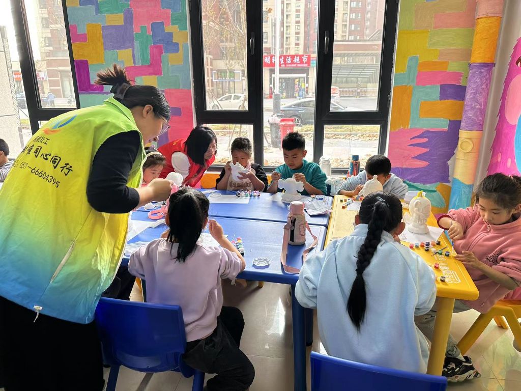 “花花班”儿童兴趣社团 ——起步区崔寨街道社工站开展“娃娃穿新衣” 石膏娃娃彩绘活动