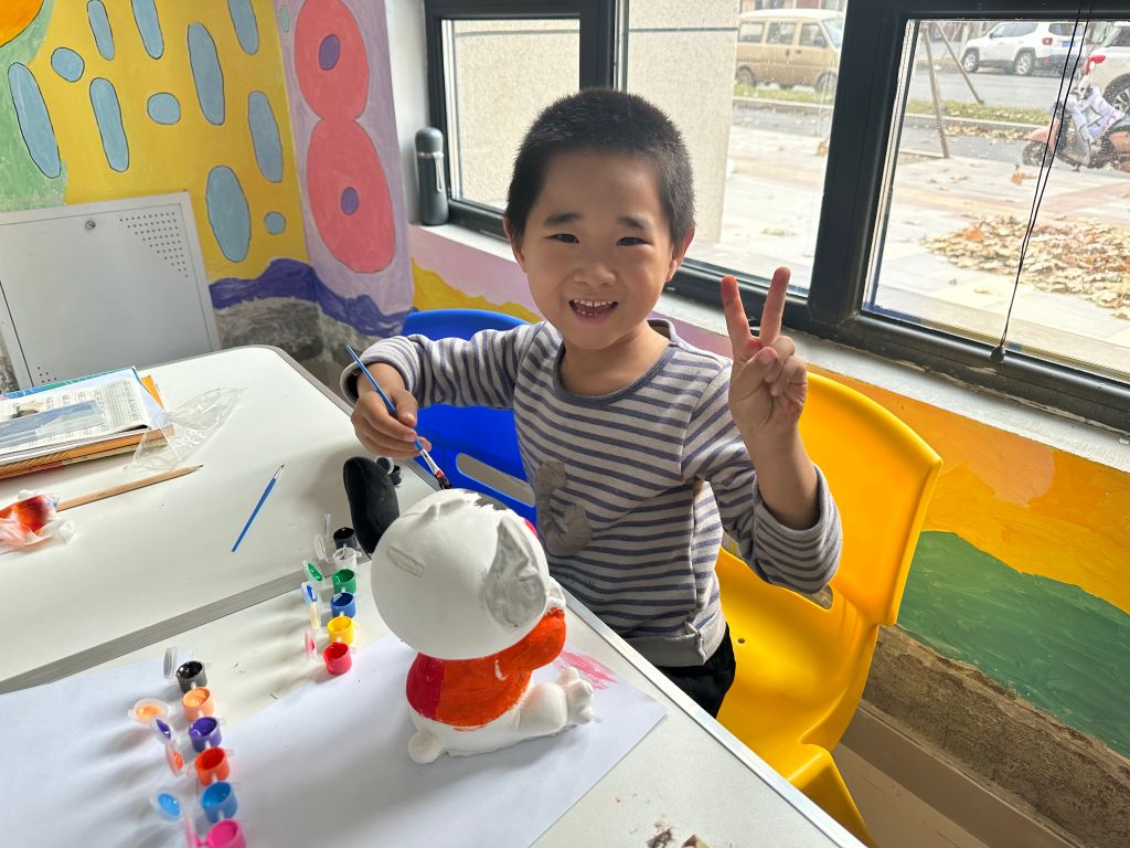 从调色、描绘到整体成型的过程,小朋友们体验到了自由表达和创作的快乐,感知到色彩世界梦幻般的千变万化。从一个白坯石膏娃娃变成一个色彩斑斓的工艺品,自己动手的成就感与“娃娃大变身”的冲击力,为小朋友们带来心灵上的震撼,真切地感受到色彩的魅力。