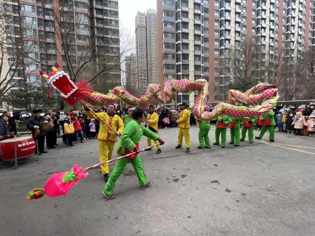 色彩鲜艳的“长龙”在舞龙队员娴熟的配合下,时而上下翻飞,时而飞腾跳跃,吉祥灵动的“彩狮”则腾空一跃,登高采青,寓意步步高升、落地生财,辖区居民也被这热闹喜庆的氛围感染,纷纷驻足喝彩拍照留影。
