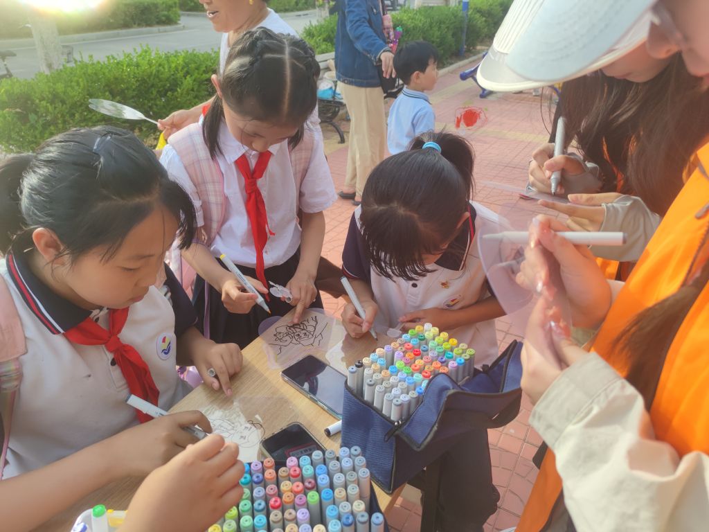 孩子们用自己的双手和想象力,为六一儿童节增添了一份独特的色彩。其中一位小朋友说到:“来参加这个活动很开心,我在这个扇子上花了西瓜、彩虹,天热了我就可以用它扇风啦!”