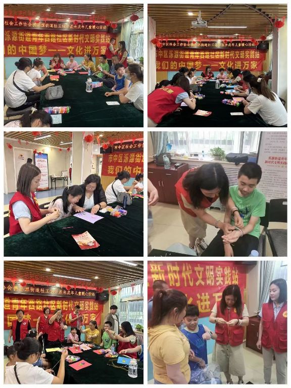 儿童是家庭的希望,是国家和民族的未来,8月24日,泺源街道社工站联合市中区社工协会共同为辖区儿童送去爱的关怀,带领儿童一起学习非遗粘土、非遗结义以及点亮孩子们的微心愿,助力孩子们的健康成长,托起特殊儿童的理想与希望。