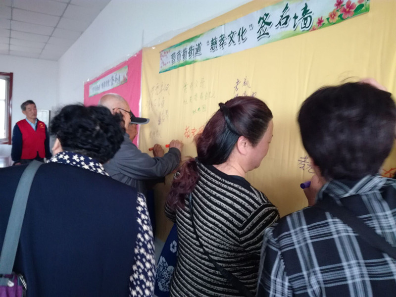 营西社区慈孝文化活动启动在即,为了弘扬慈孝文化,在社区营造尊老爱老的慈孝之风。社区联合“萤火虫”项目组社工于5月4号上午在营市西街工坊举办主会场活动,在各个网格内都设置分会场活动和签名墙,居民们都踊跃参与。