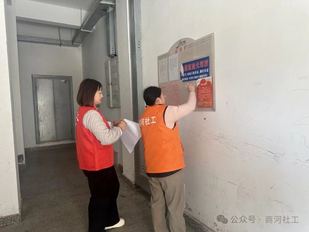 殷巷镇社工与志愿者深入社区,通过面对面宣传、楼道张贴宣传资料等形式,结合春季火灾特点、电气火灾预防、燃气使用后关闭等情况进行入户提醒和普及讲解,告知居民要提高消防安全意识,养成安全用火、用电、用气好习惯,在离家或者睡觉前,一定要检查电器用具是否断等,坚决预防火灾事故地发生。