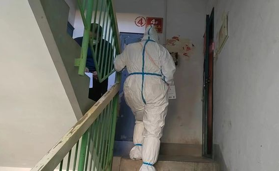 社工上门为居民进行核酸检测登记