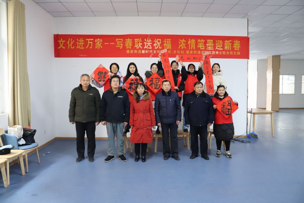 小小的春联,洋溢的是深深祝福,是辞旧迎新的喜悦,是继往开来的憧憬。董家街道社工站积极链接辖区内文化艺术资源,通过此次活动,给辖区群众送去“文化年货”,不仅弘扬了中华民族传统文化,提升了辖区居民的人文素养,增强了对书法艺术的认识和了解,传承了国粹书法,同时渲染出新春佳节的喜庆氛围。今后,董家街道社工站将继续大力推广“美好董家”特色服务品牌,并将致力于衔接、整合各项资源,广泛接纳辖区居民群众的意见和想法,引导更多的居民参与到活动中来,社工站也将继续创新思维设计并开展更加丰富多彩的活动,在辖区内营造出和谐、美好的氛围。