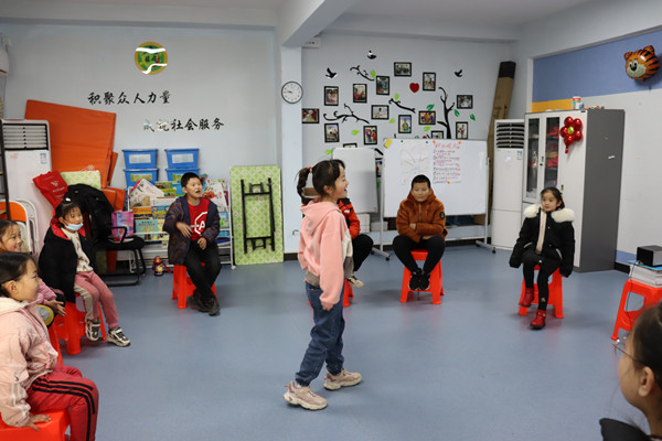 1月18日上午,积成社区活动中心传来欢声笑语,原来是社工在组织孩子们做开营仪式的破冰游戏——“大风吹”。“吹有头发的人”“吹穿衣服的人”……,孩子们脑洞大开,破冰游戏在阵阵笑声中结束。通过破冰游戏,孩子们也逐渐放开,互相交流,并进行了自我介绍。