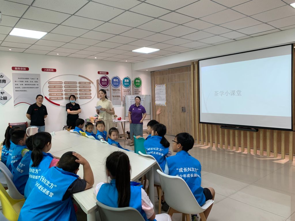 茶、源自中国,盛行世界, 既是全球同享的健康饮品,也是中华文化的亮丽名片。为了让青少年感受传统茶文化的博大精深,以茶香润童心,争做文化传承人,7月21日匡山街道社工站特邀请山东元正茶业有限责任公司茶艺师在匡山小区东街社区为“成长N次方”多元成长夏令营成员们开展“历奇辅导成长训练营”——职业体验篇特别活动,使青少年在知礼、懂礼、行礼的同时健康快乐成长。