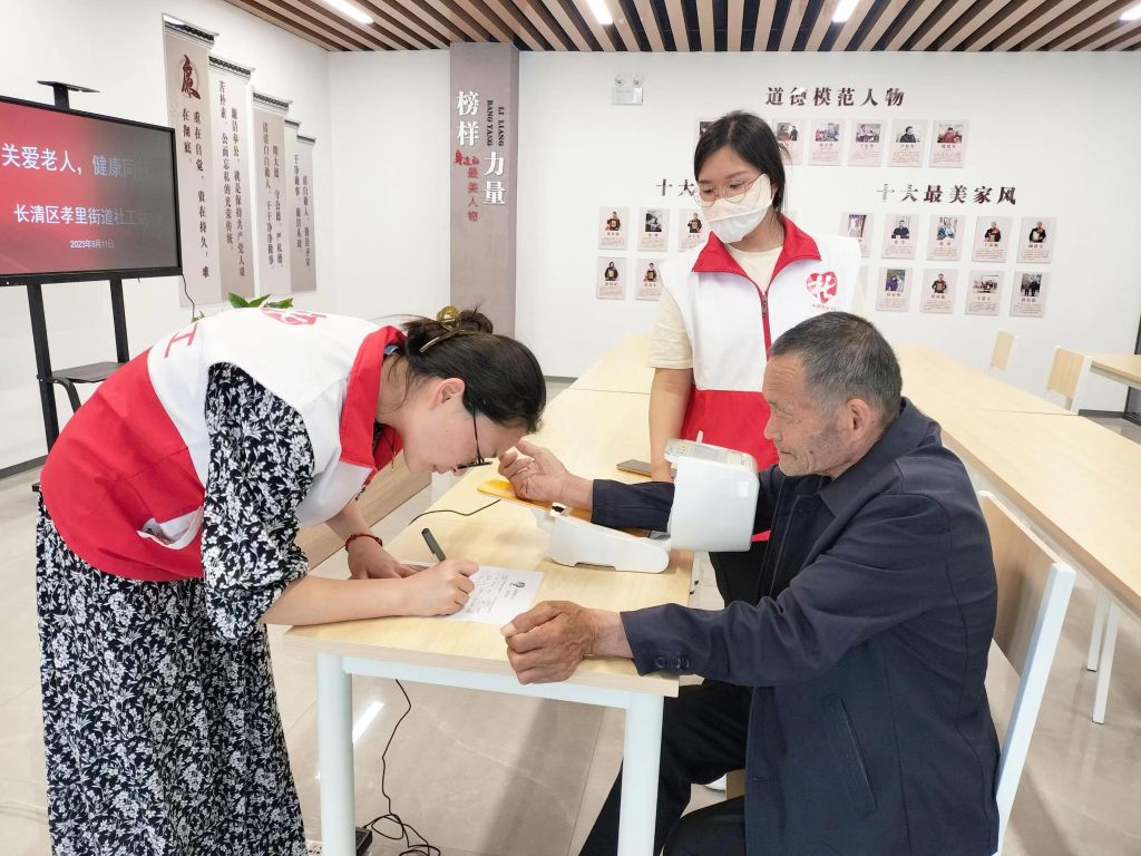高血压病是一种世界性的常见病、多发病,严重威胁着人类健康。为增强老年人的自我保健意识,树立科学健康的生活,5月11日孝里街道社工站于孝里街道党群服务中心为老人们提供贴心的血压测量服务,用真诚之心换老人们的怡然一笑。