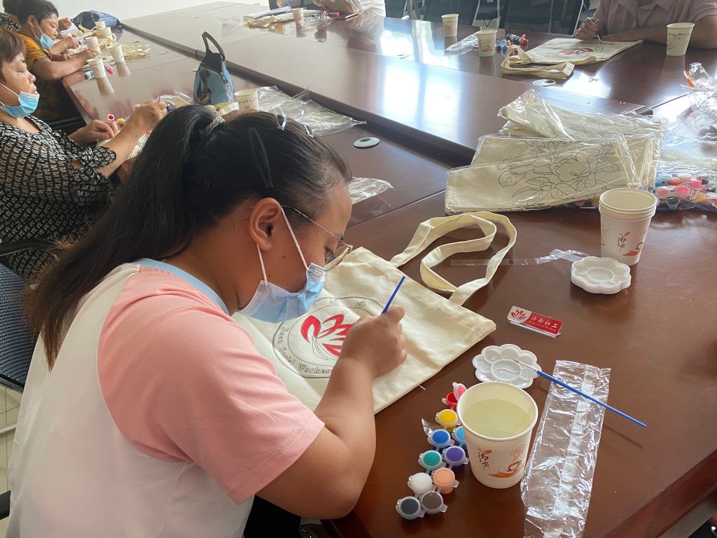 社工通过前两节的小组活动,带领组员制作了端午粽、团扇等手工品,锻炼参加者手部、脑部协调的能力。这次社工给大家带了DIY的涂鸦帆布包,可以让大家自由发挥,涂上自己心仪的颜色。社工的耐心指导,组员的专心学习,很快掌握了涂鸦的制作手法和技巧,制作出了造型精美的手工作品。组员表示,手工作品都是第一次接触,过程简单有趣,下次还来。最后的作品展示得到其他成员的赞赏也感到很开心,不仅拉近了彼此之间的距离,还增强了自信心和满足感。