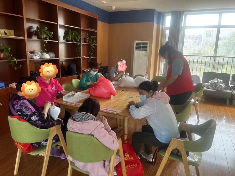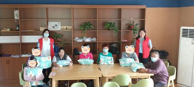 活动开始后,社工向大家介绍了此次活动的流程及注意事项。随后,社工带着大家一起制作爱心坐垫。在社工的引导下,大家相互协作,有的负责穿针,有的负责引线,有的负责缝,一会的功夫,一个个精美的坐垫就缝制好了。