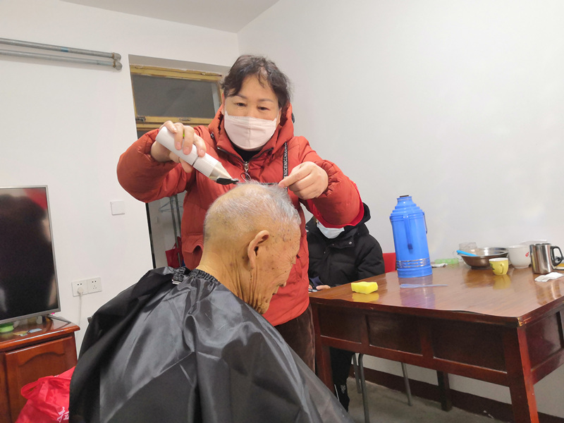 1月28日、29日两天,星星火项目组社工带领“志愿星火”的志愿者,走进社区高龄独居、居家养老及不方便出门的老人家中,为他们上门理发,送上新年关怀。80多岁的吴老师就是接受这次公益理发的一员,社工和志愿者来到吴老师家中,吴老师的老伴热情接待了我们,在交谈中,我们了解到:因为身体原因,吴老师需要长期插着尿管,出门理发更是成了一件难事。说话间,吴老师被老伴从房间搀扶出来,跟大家打着招呼,志愿者询问了吴老师对于发型的要求,便开始了本次服务。咔咔的剪刀声和嗡嗡的推子声此起彼伏,志愿者剪掉的是那一寸寸发丝,剪不掉的是志愿星火那沉甸甸的爱。修剪结束后,吴老师对着镜子摸摸头发,满意地点点头。