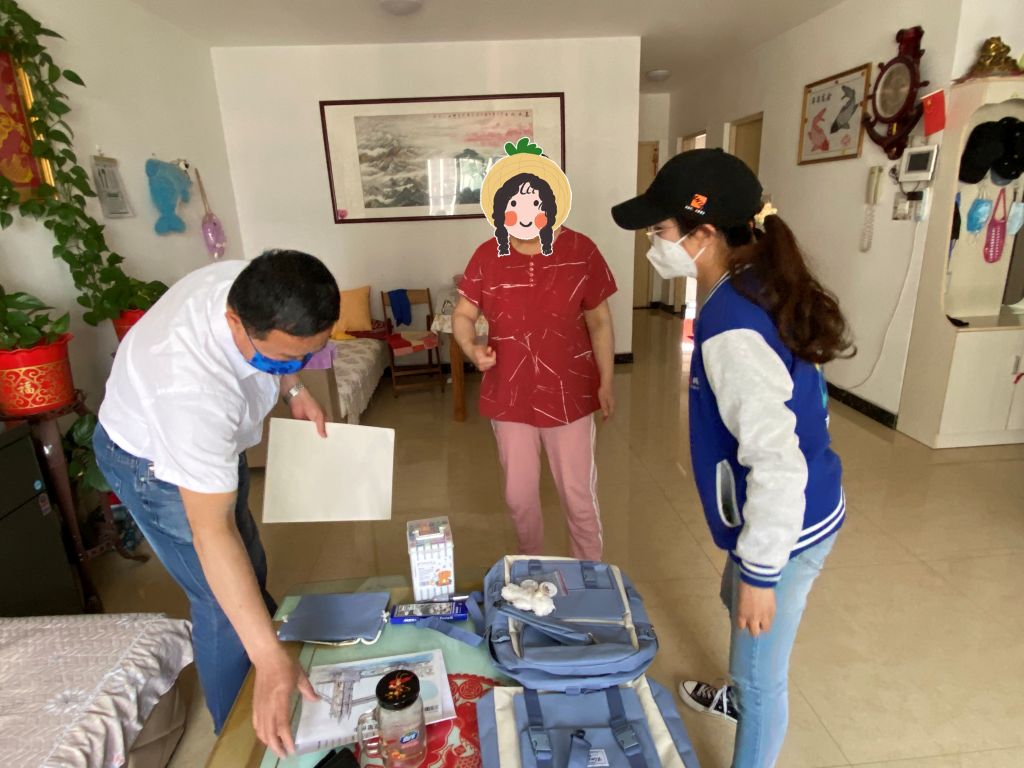 儿童社工和儿童主任将圆梦物品书包和学习用品送至困境儿童家中