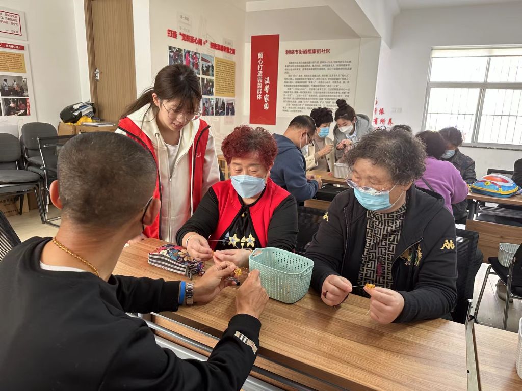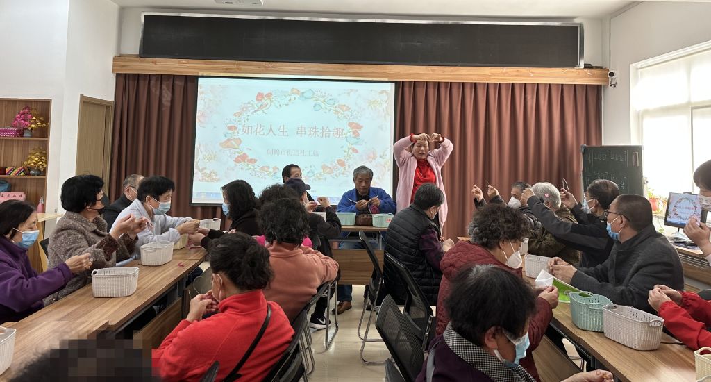 在“三八”国际妇女节来临之际,为丰富老年妇女的业余生活,增添老年人的生活乐趣,3月6日下午,制锦市街道社工站联合福康街社区开展“如花人生,串珠拾趣”为主题的串珠培训活动。