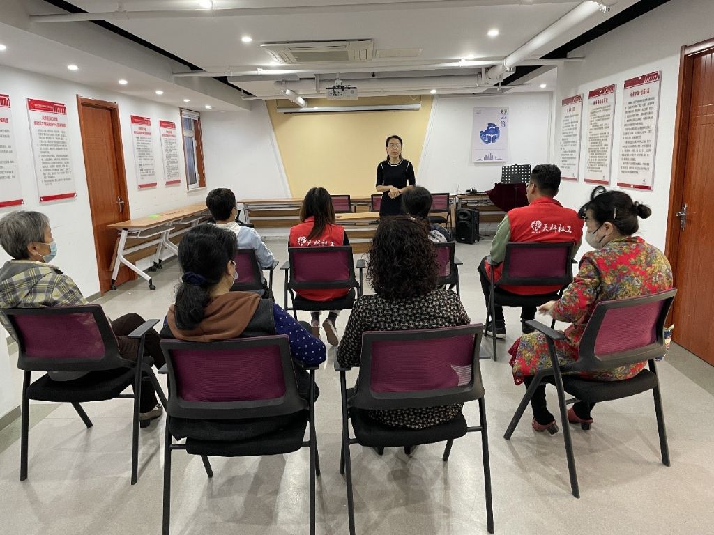 活动伊始,社工向大家介绍了老师的专业性及本次活动的各个环节。为了让老人们更好地融入课堂,营造良好的上课氛围,孙老师带领大家进行了课前预备保健操,带领大家游臂、转腰、活动膝关节。讲座中,孙老师从饮食、睡眠、运动、养生等四个方面,向大家详细讲解了有关合理膳食及科学养生的知识,还为大家设置了暖心提问环节,解答老人们的健康疑问,分享保健心得,并建议大家平时要多注意体检保健,提高保健意识。