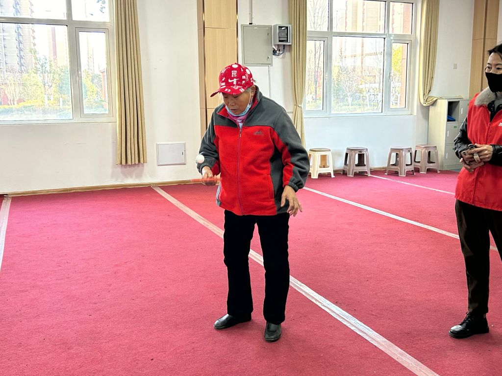 社工在活动前期积极征询建议,一方面整合辖区现有志愿者队伍,挖掘骨干参与运动会计分、拍照、秩序维持等环节,另一方面充分考虑到失独老人的身体状况,合理安排活动内容,大大增强了老人之间的互动性和活动的参与性。运动会遵循“活动量小、趣味性高、易参与”的原则开展,并按照老年人的喜好准备了“颠球区”、“套圈区”“拍球区”等游戏项目。社工为大家详细地讲解游戏规则后,与志愿者分工合作,逐步引导失独长者在活动项目前按照顺序排好队,逐个参与。