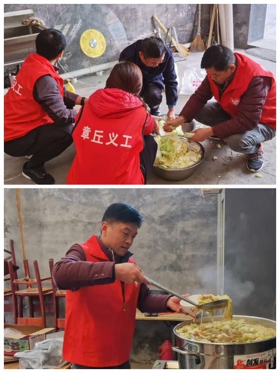 11月19日,迎来“慈善+社工+志愿者”长者互助食堂志愿服务第二十二个活动周。章丘区社工总站组织普集、龙山、相公庄街道社工站联合章丘义工协会、蓝天救援公益服务中心、壹加壹爱心公益服务中心等30余名志愿者携带章丘慈善总会捐赠的食材分别前往相公庄街道七郎院村、龙山街道权庄北村等6家幸福院为老人们做志愿服务。