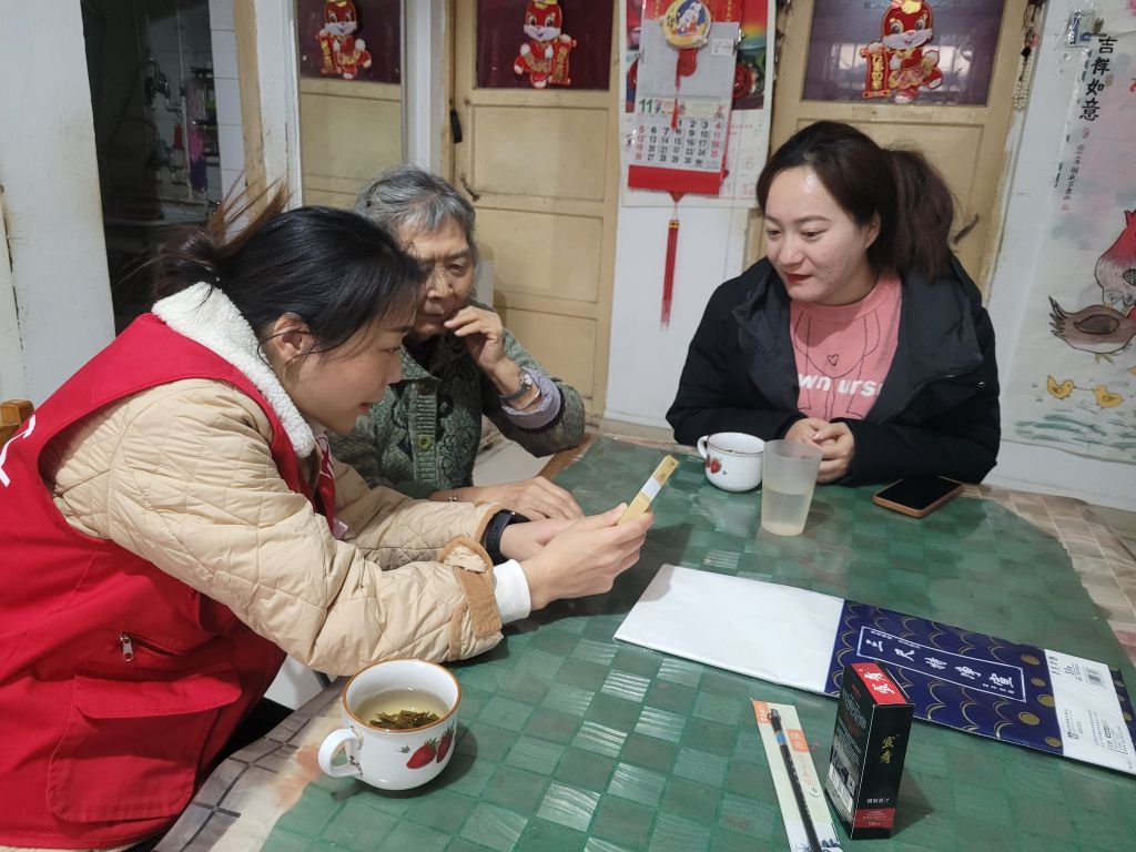 走访中,社会工作者同服务对象亲切交流,通过面对面聊家常的形式,倾听服务对象家庭的近况。随后,以服务对象创作的书画作品为切入点,将募集的物资交给服务对象,服务对象拿着宣纸感动的说“你们太用心体贴了,真是太谢谢你们了”“妈妈,过年的时候用这个卡纸写个大大的福字,多好呀!”服务对象的女儿憧憬着。
