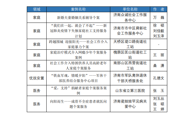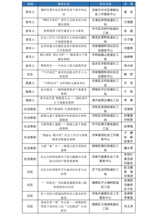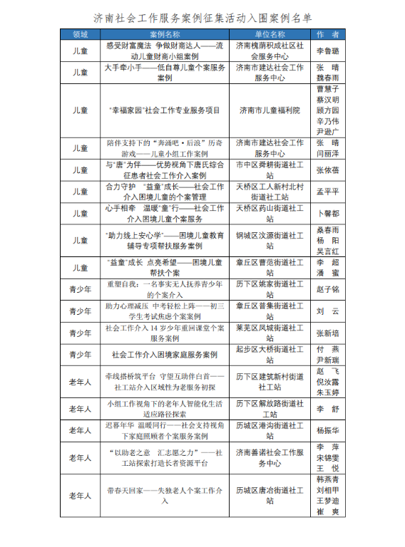 济南社会工作服务案例征集活动入围案例名单公示