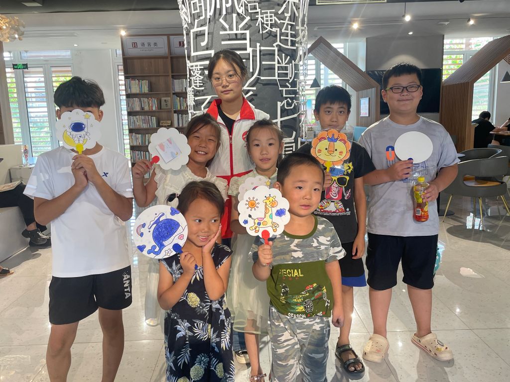 向组员讲解扇子的DIY的制作过程,对扇子的上色技巧和注意事项做了讲解,随后为大家分发了扇子和材料,孩子们热情高涨,在社工的引导下,小朋友们拿着手中的画笔,认真填涂,仔细描绘,用自己灵巧的小手尽情发挥自己的创意,一把普通的扇子在孩子们的画笔下变得绚丽多彩,一抹抹色彩给炎热的夏天带来一丝清凉。